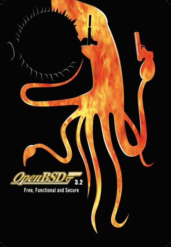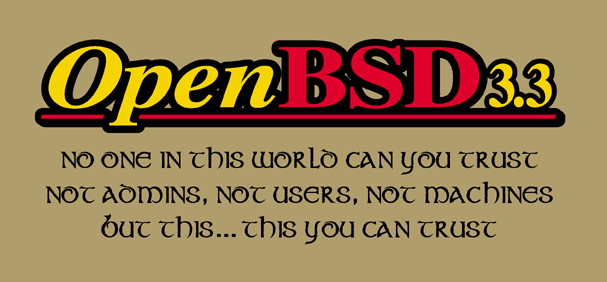The back features a Frazetta-style painting by Ty Semaka for the "Puffy the Barbarian" theme of the OpenBSD 3.3 release. The front contains a modified quote from the Conan the Barbarian movies.